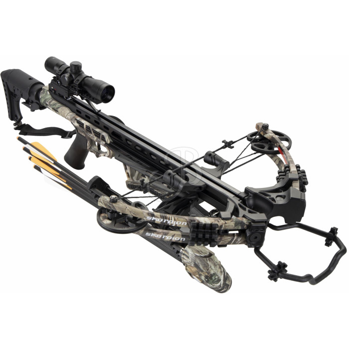 Il modello Skorpion XBC 420 ha una grande potenza, supportata da un sistema con cam in alluminio fresato. La comodità di utilizzo è migliorata dalla presenza del calcio regolabile in lunghezza (tra 91 e 99 cm di lunghezza totale) e dalla possibilità di regolare la posizione della guancetta e dell’appoggio per la mano in posizione centrale alla balestra. La sicurezza e la piacevolezza di tiro sono aumentate dal sistema anti dry fire che previene rilasci accidentali senza il dardo e da smorzatori di vibrazione a corda e sui flettenti sdoppiati. La faretra può essere montata in posizione laterale per non essere d’intralcio e per permettere di prendere un dardo velocemente.